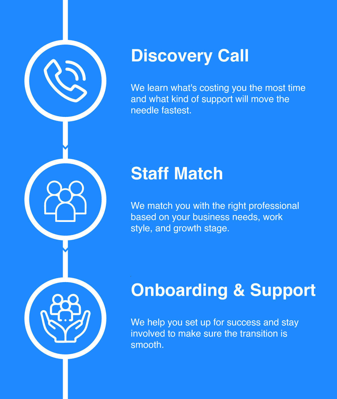 Transition-ready: When you're eventually ready to hire directly, we help make that handover seamless, so you never start from zero again.